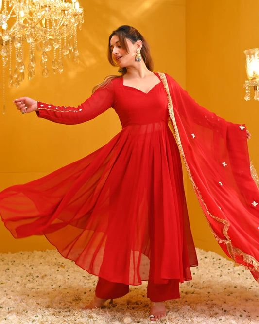 Ruhani Red Flared Anarkali Set with Gold Dupatta
