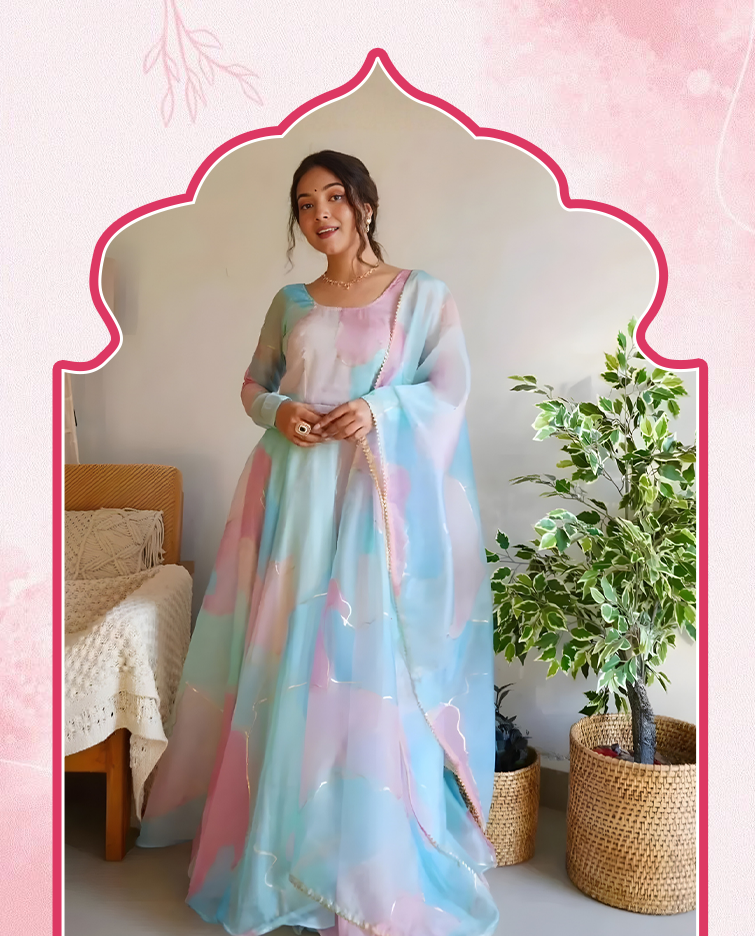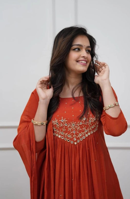 Rust Orange Mirror Work Anarkali Kurta Set