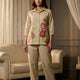 Beige Floral Embroidered Shirt & Pant Co-ord Set