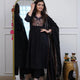 Understated Glamour in Black. Discover the beauty of subtle detailing with our 'Noir Thread' Anarkali Set. While black is often associated with heavy bling, this piece takes a sophisticated route with intricate multi-colored thread embroidery on the yoke. It’s the perfect choice for women who want the slimming elegance of black without the weight of sequins or mirrors.