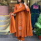 Rust Orange Geometric Thread Embroidered Straight Kurta Set